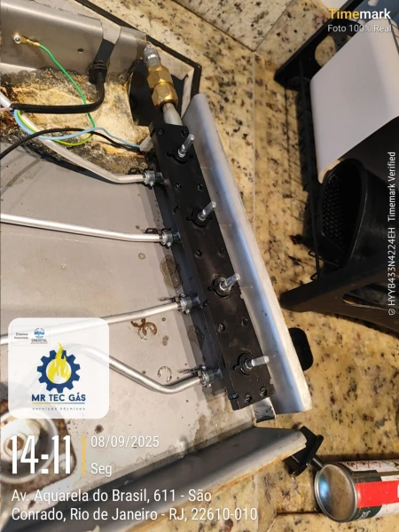O serviço envolve adaptação da bancada, ligação à rede de gás encanado e verificação de pontos de ventilação.